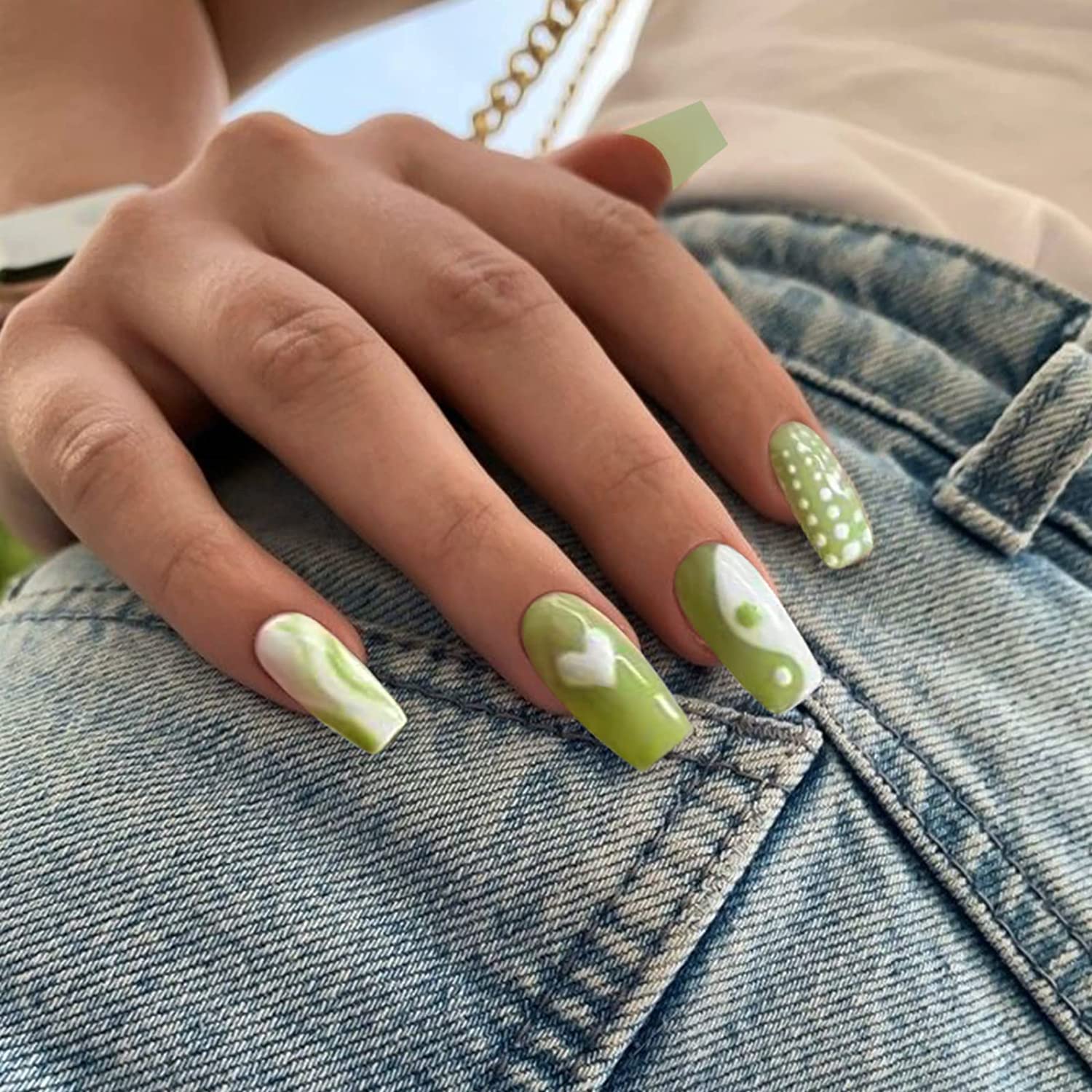 Puff Pattern Long Square Green Cute St. Patrick's Day Press On Nails