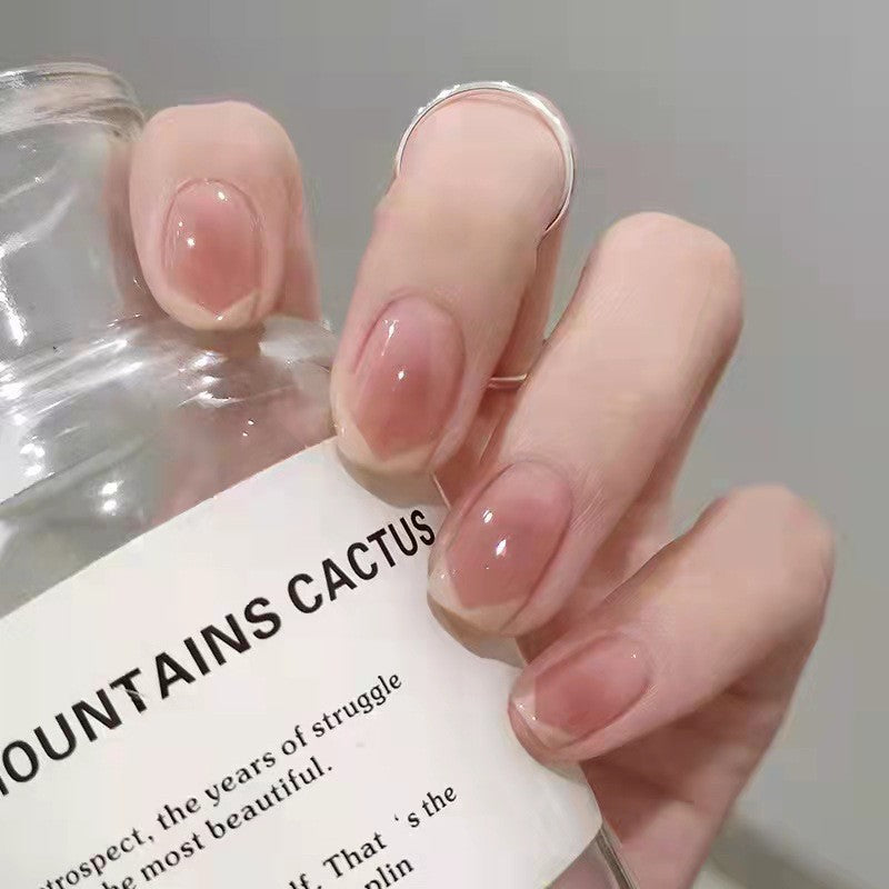 Pure Elegance Short Square Beige Press-on Nail Set with High Gloss Finish