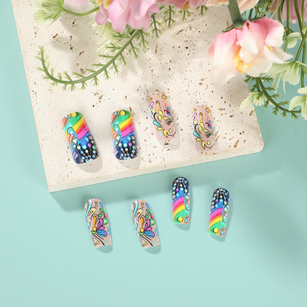 Rainbow Dream Vibrant Medium Square Colorful Floral Press-On Nail Set