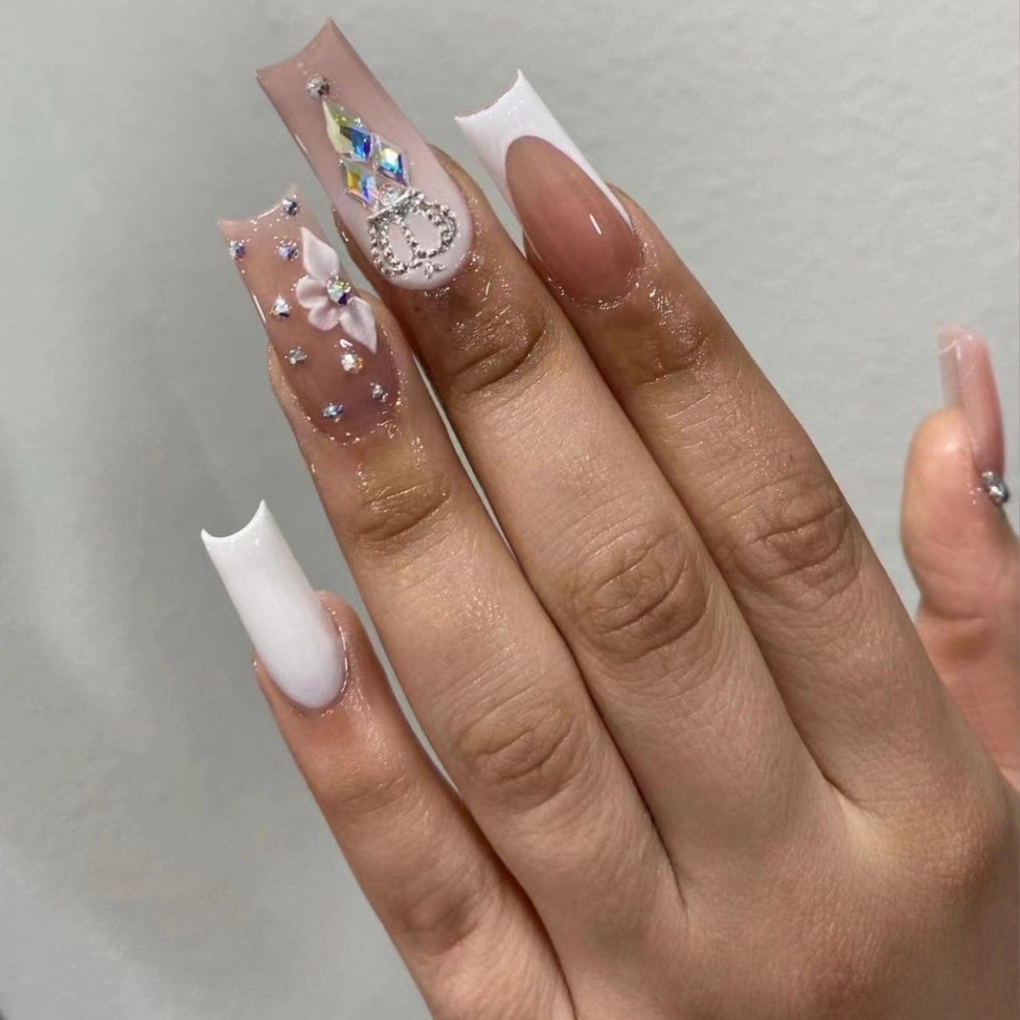 Swipe My Card Long Almond Pink Studded Press On Nails