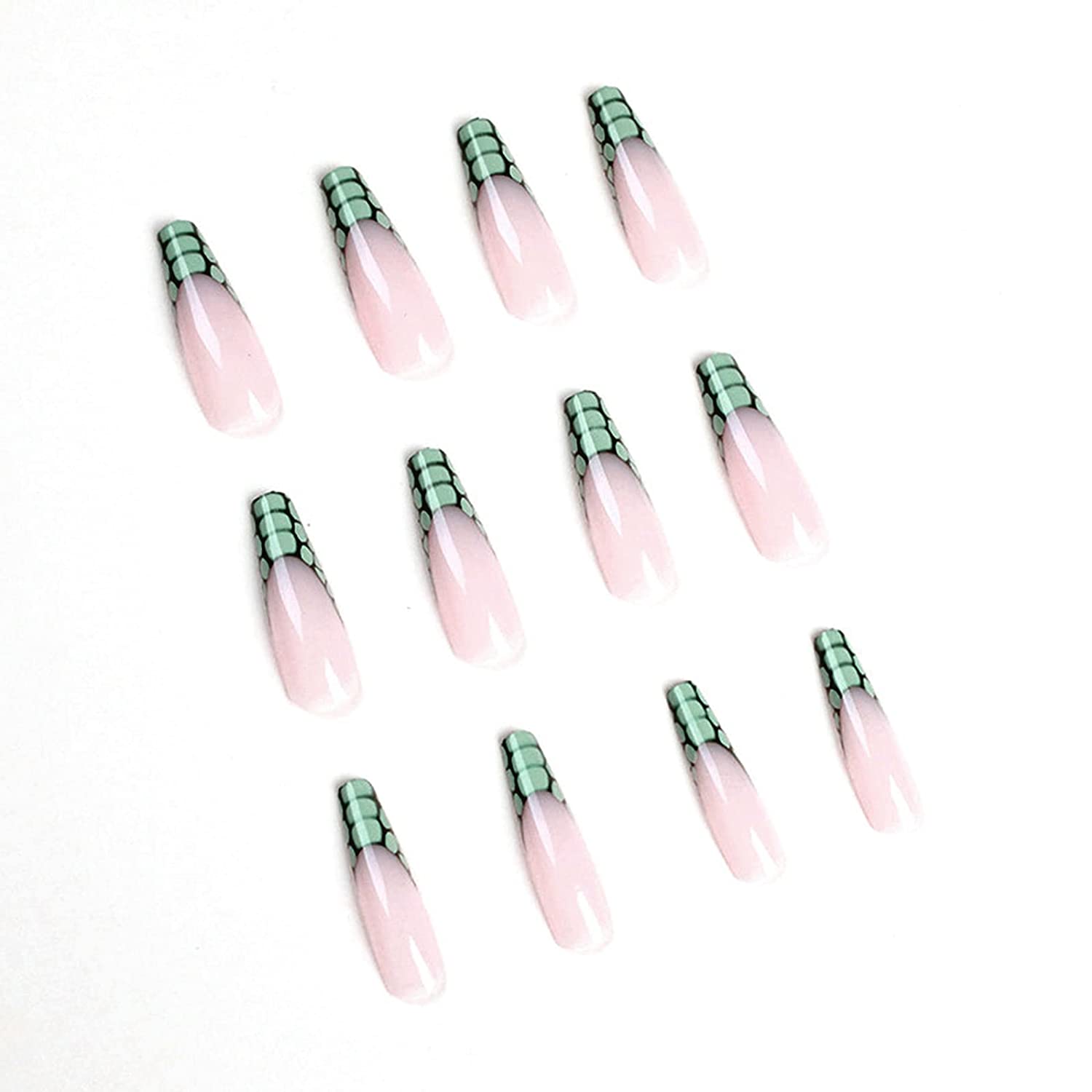 Reptile World Long Coffin Green Snake Skin St. Patrick's Day Press On Nails