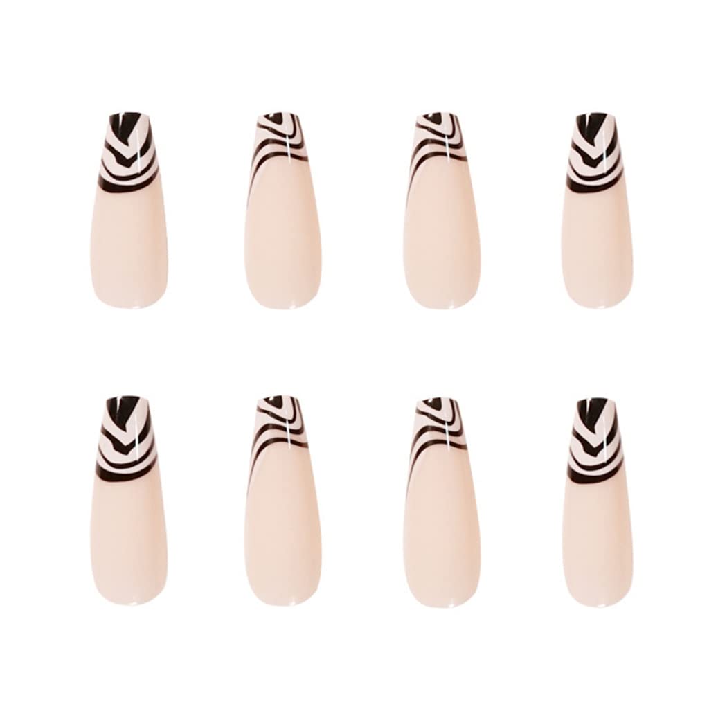 White Swirl Lines Medium Coffin White Everyday Press On Nails