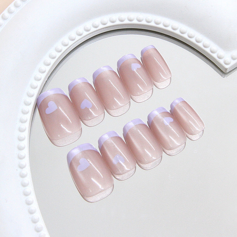 Romantic Bliss Short Square Pink with Heart Design Press On Nail Set