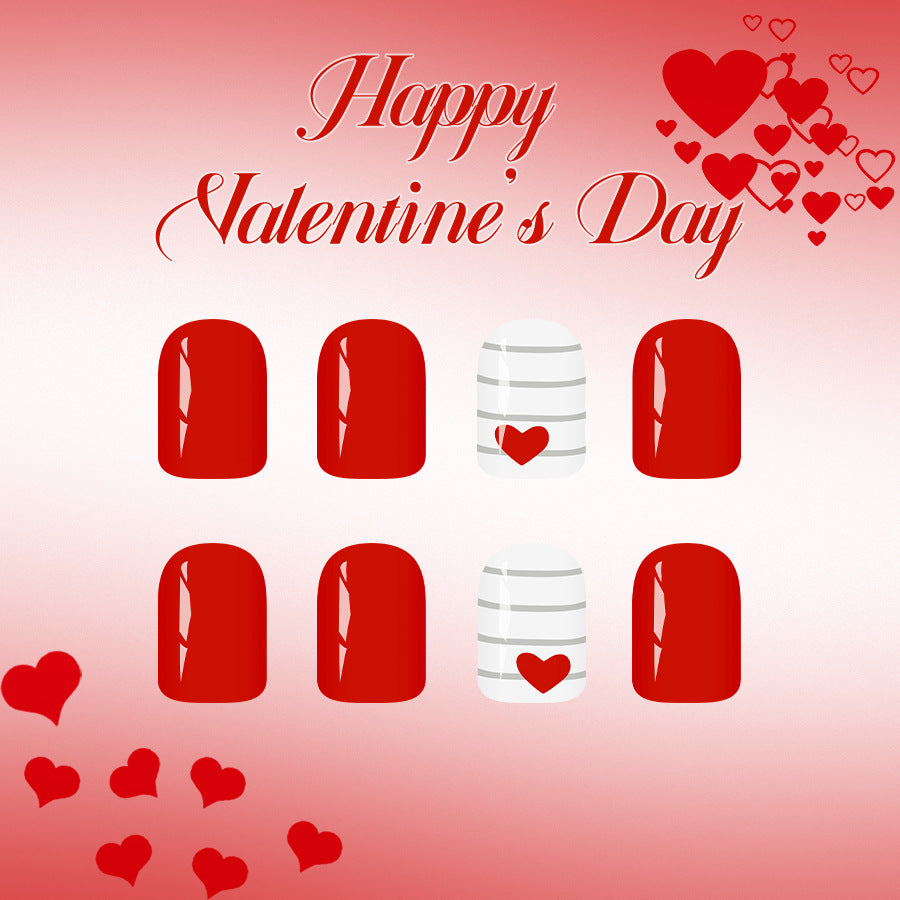 Romantic Celebration Short Square Red Nail Set with Charming Heart Accent