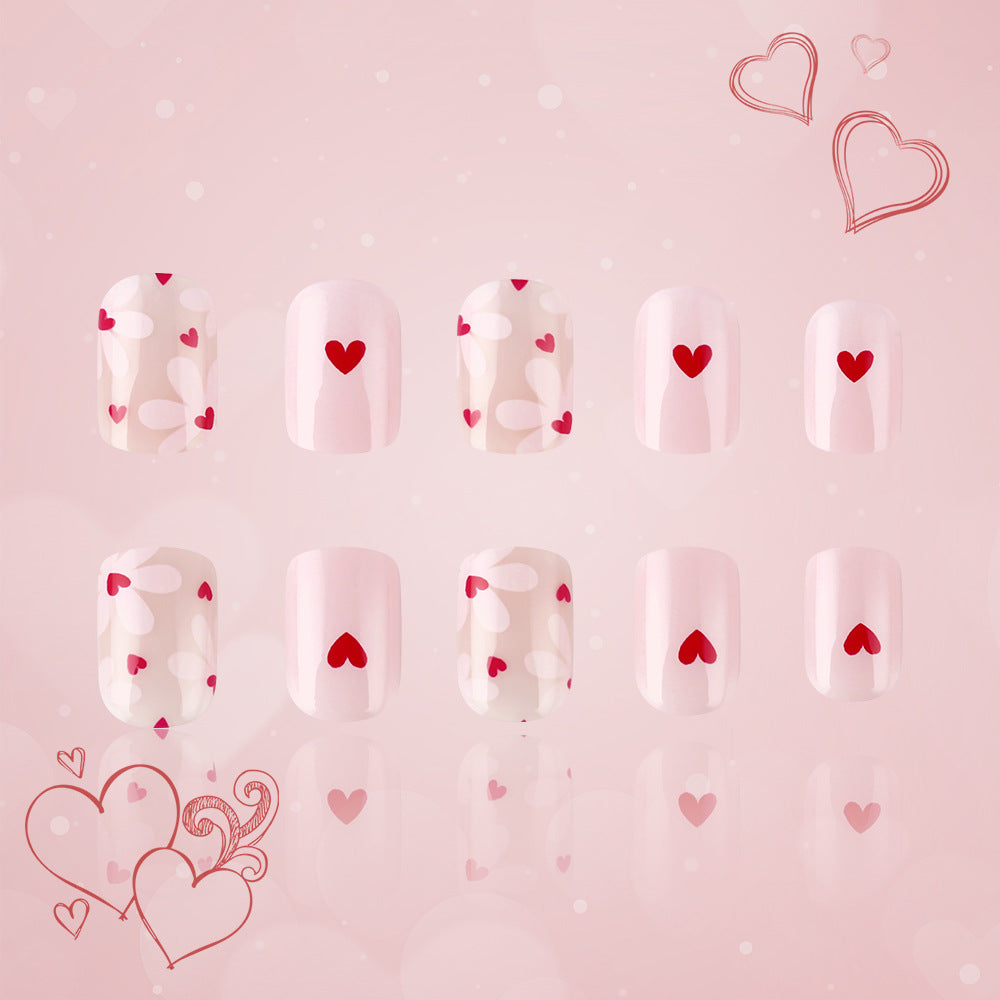 Romantic Elegance Short Square Pink Press On Nail Set with Sweetheart Design and Glossy Finish