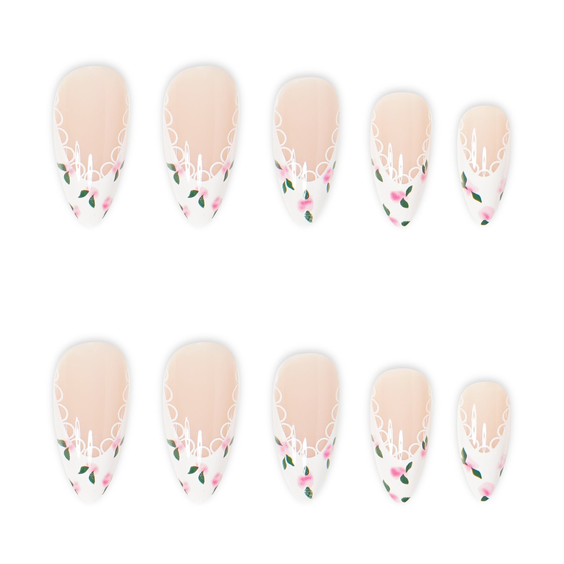 Romantic Garden Elegant Short Almond Shaped Soft Pink Floral Press On Nail Set