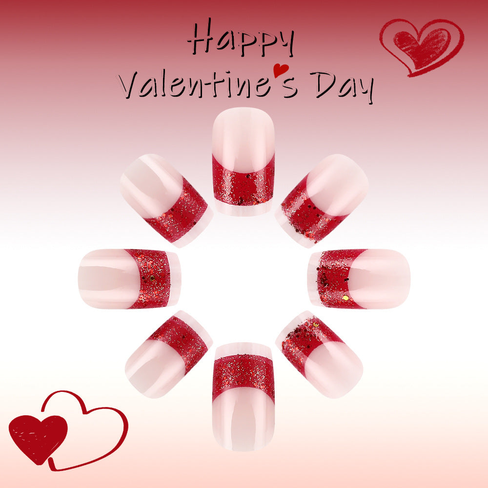 Romantic Heartfelt Magic Medium Square Red Glitter Gradient Press-On Nail Set