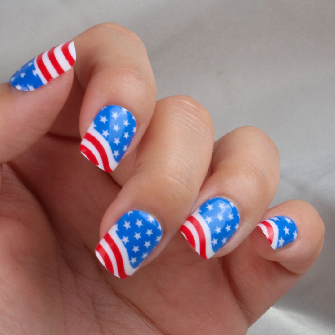 Sea To Shining Sea Medium Square Red White And Blue 4th Of July Press On Nails