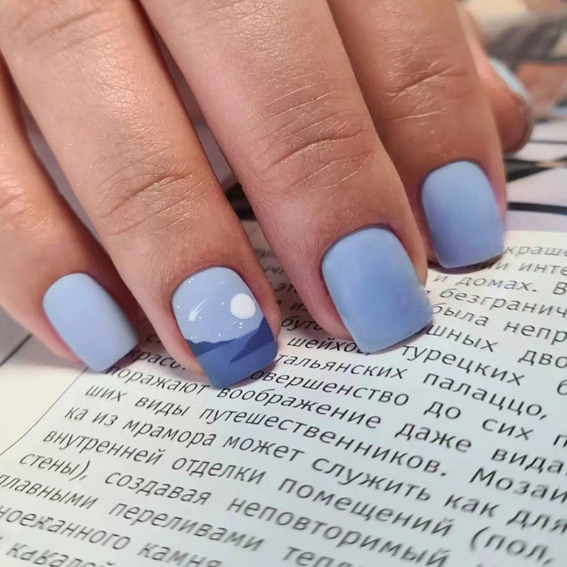 Shooting Star Short Square Blue Abstract Press On Nails