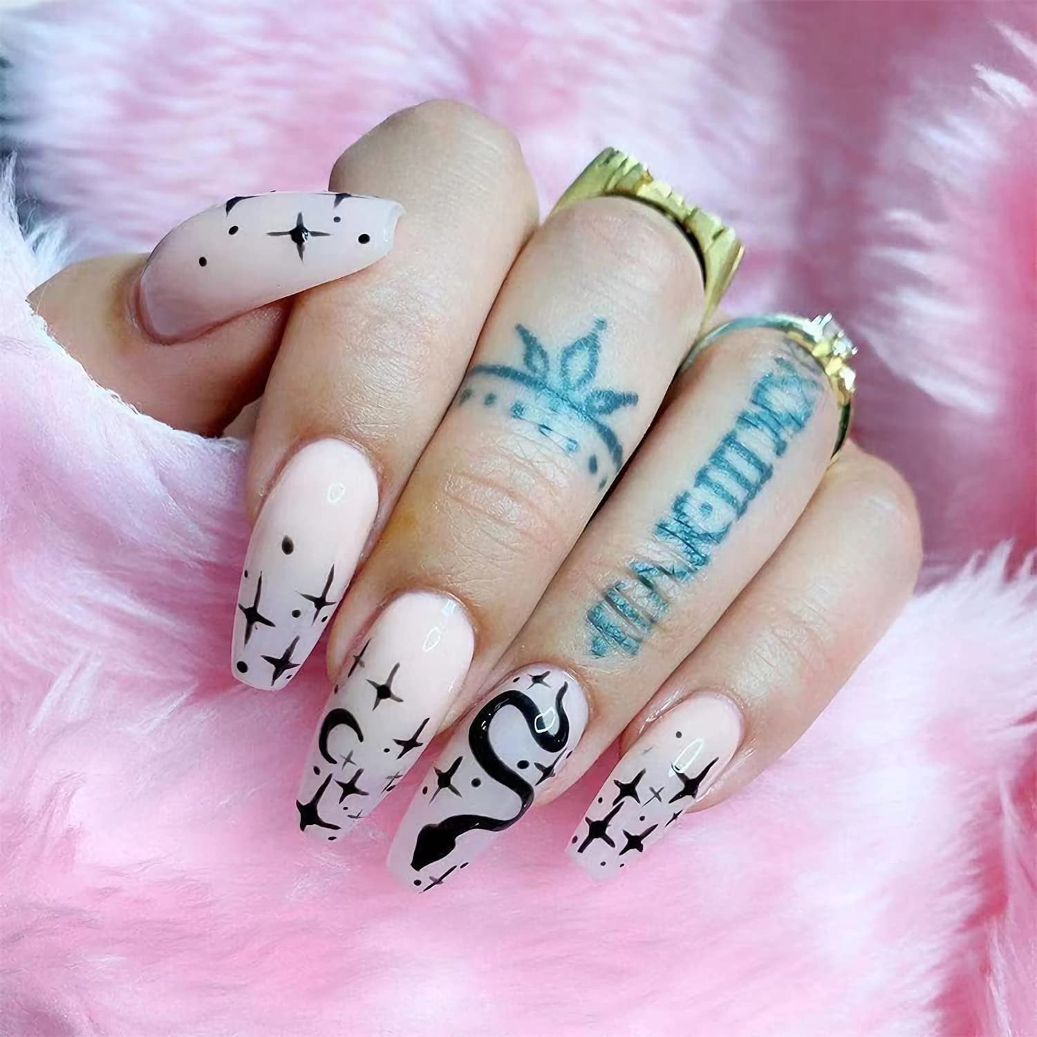 Snake Lives Long Oval Black Astrology Press On Nails