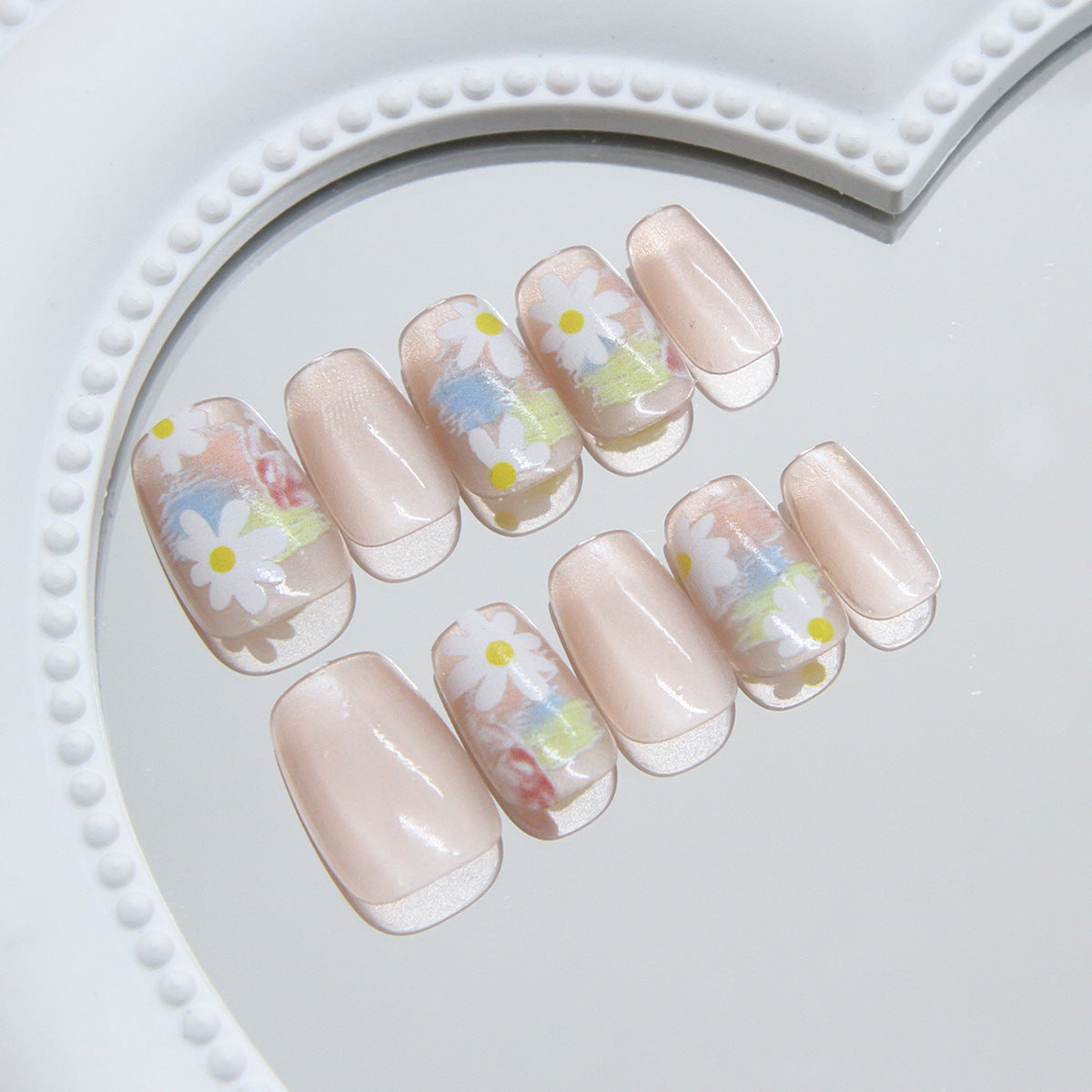 Spring Blossom Artistry Short Square Beige Press On Nail Set with Floral Accents