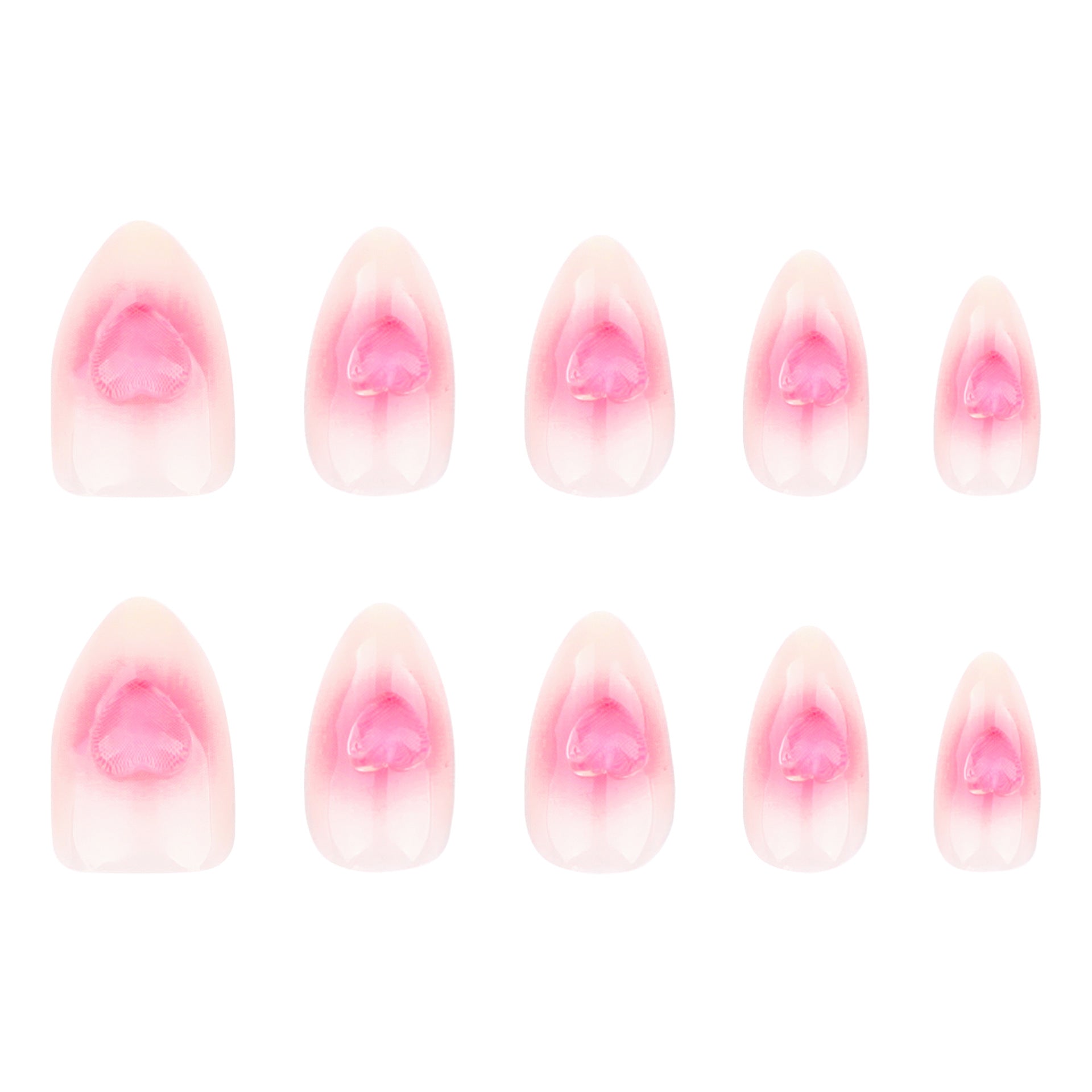 Sweetheart Dream Press On Nails Short Almond Papercut Shape Soft Pink with Heart Design