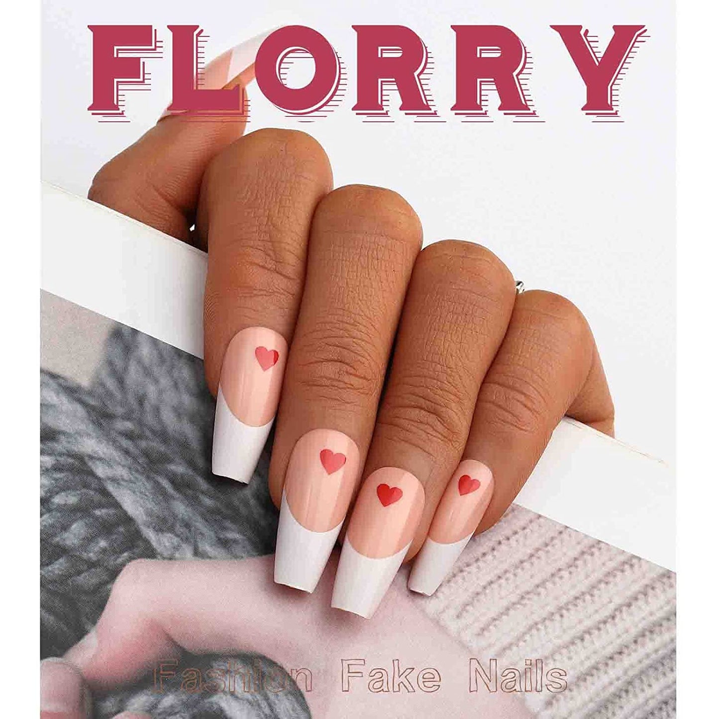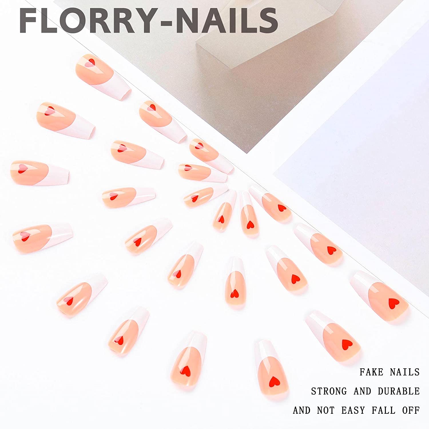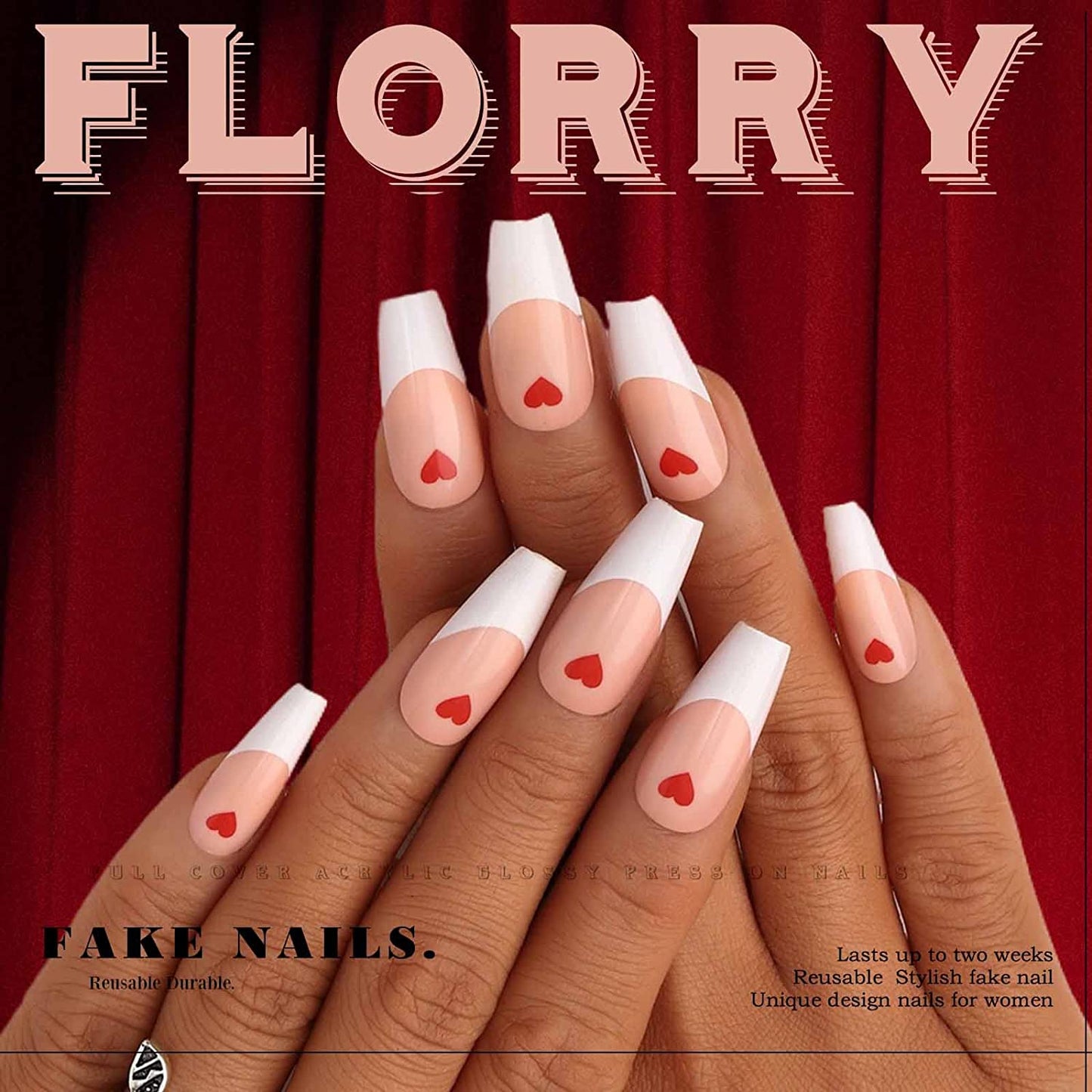 Tiny Hearts Short Coffin White Everyday Press On Nails