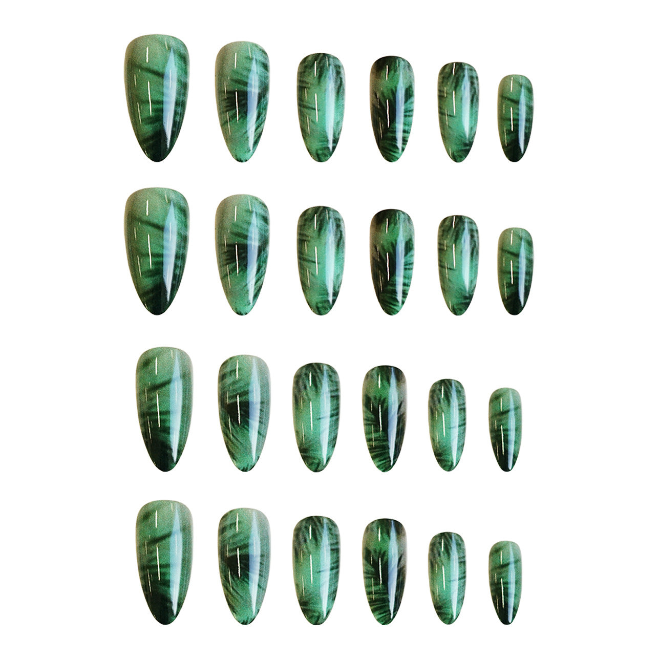 Tropical Oasis Short Almond Green Marble Press On Nail Set with Stunning Swirl Design