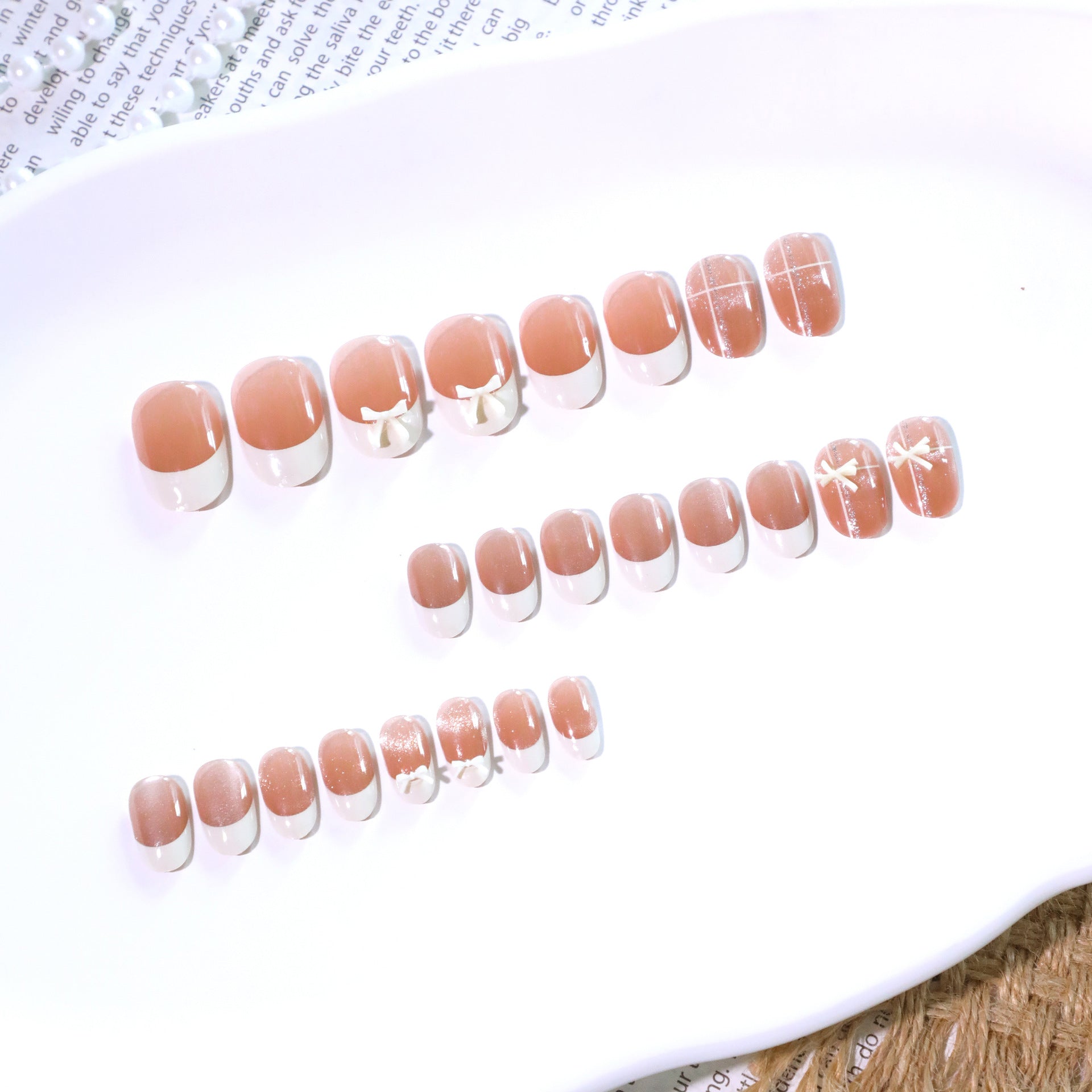 Tropical Paradise Elegant Medium Round Shaped Beige Press On Nail Set with Charming Bow Accents