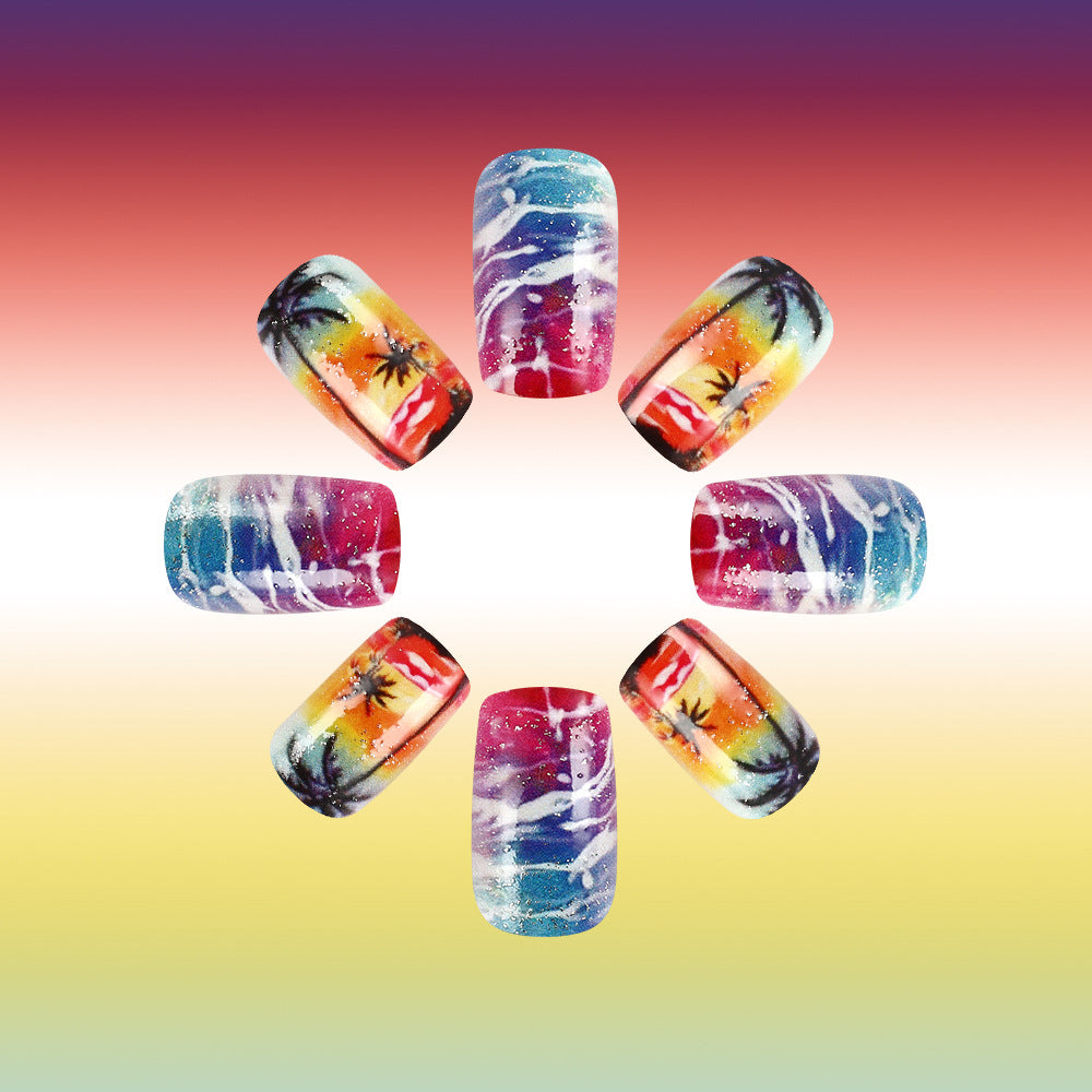 Tropical Paradise Short Square Colorful Ombre Design with Glitter Finish Press-On Nail Set