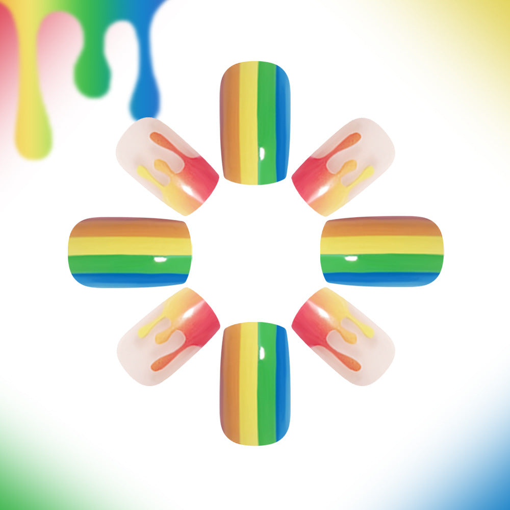 Vibrant Rainbow Bliss Medium Square Colorful Ombre Drip Nail Set