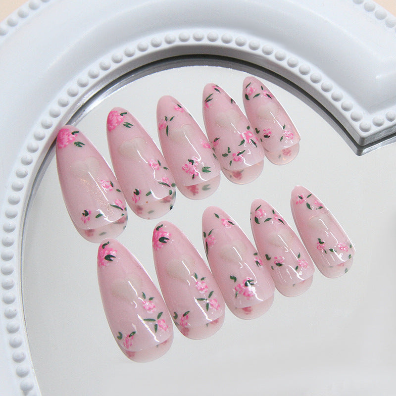 Blushing Bouquet Short Almond Pink Floral Press On Nails