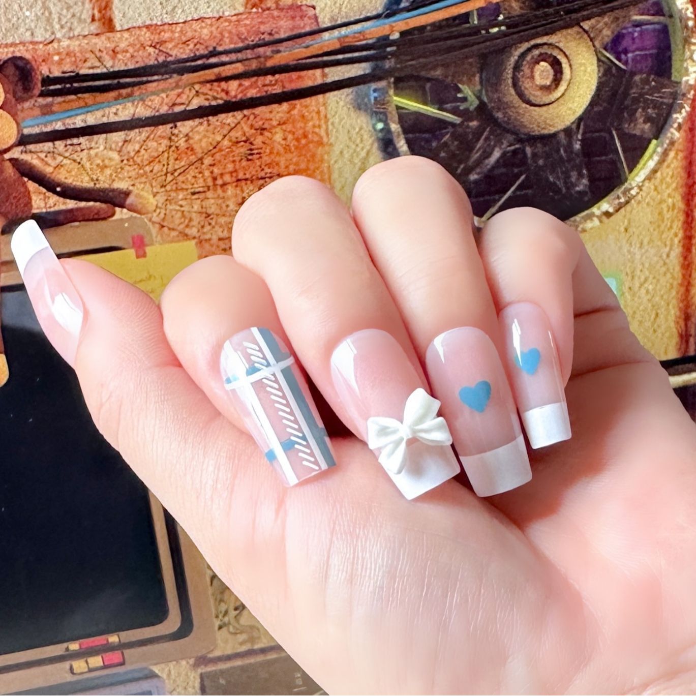 Vintage Charm Medium Square Pink Press On Nail Set with Bow Accent and Heart Designs