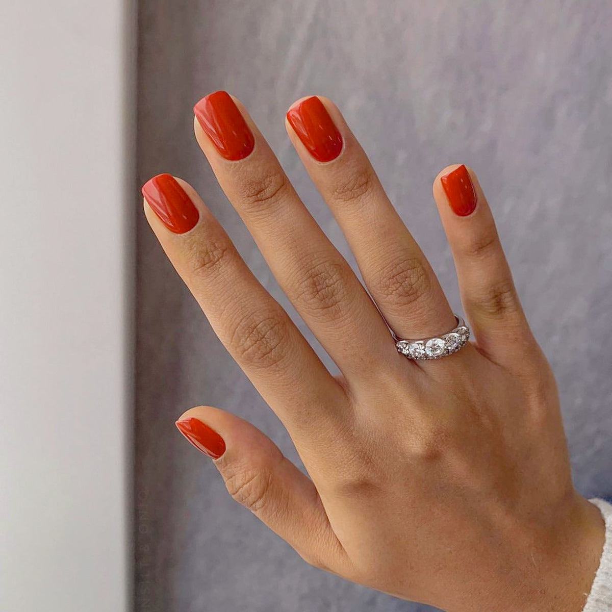 Vivid Vermilion Medium Square Solid Color Press On Nail Set with High Gloss Finish