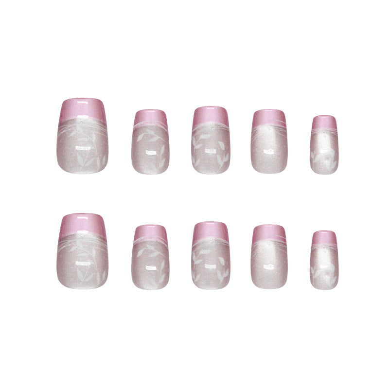 Whimsical Dreamy Short Square Pink Ombre Press On Nail Set with Elegant Floral Design