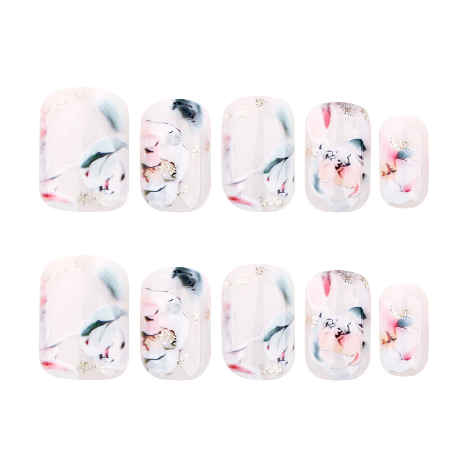 Blushing Bouquet Short Almond Pink Floral Press On Nails