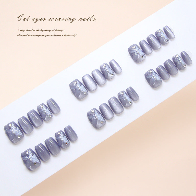 Whimsical Midnight Dream Short Square Soft Lavender with Floral Accents Press-On Nail Set