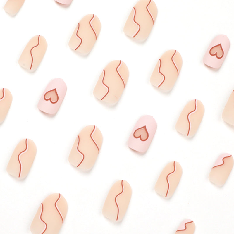 Whisper Please Short Oval Beige Pattern Press On Nails