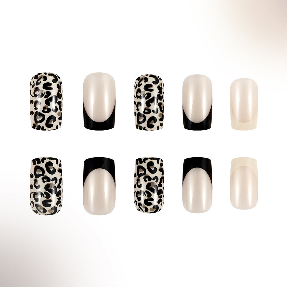Wild Elegance Short Square Beige and Black Leopard Print Press On Nail Set with Shine Finish