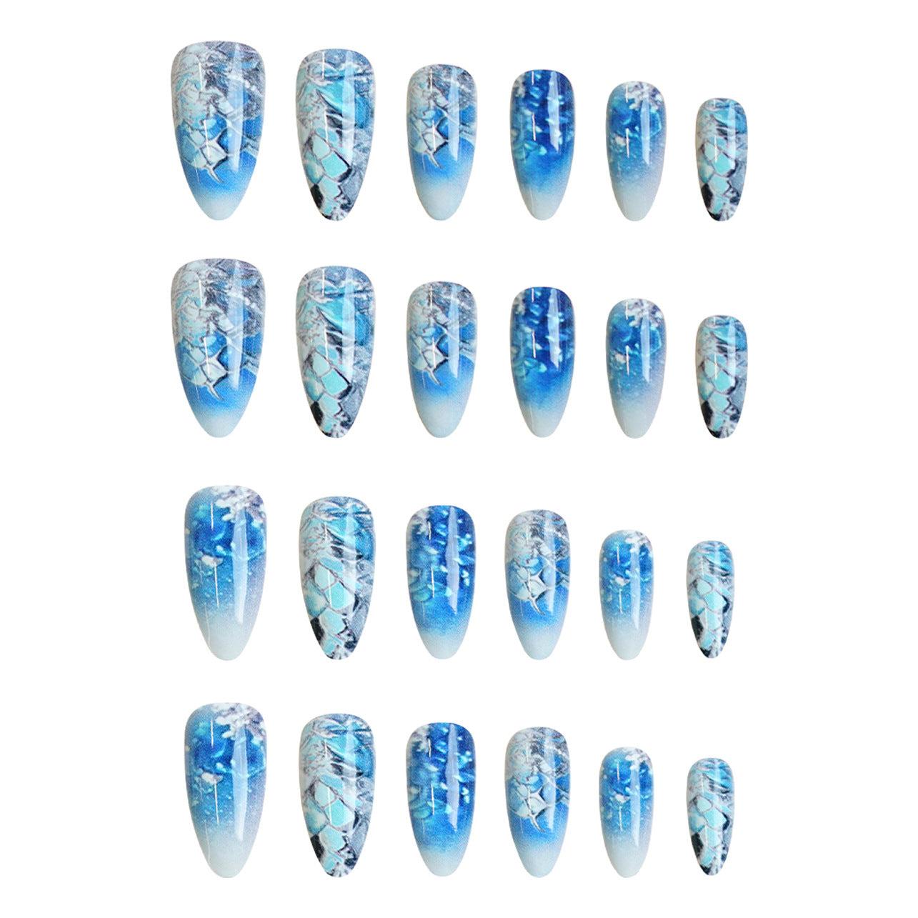 Winter Wonderland Medium Almond Blue Ombre with Frosted Snowflake Detail Press-On Nail Set