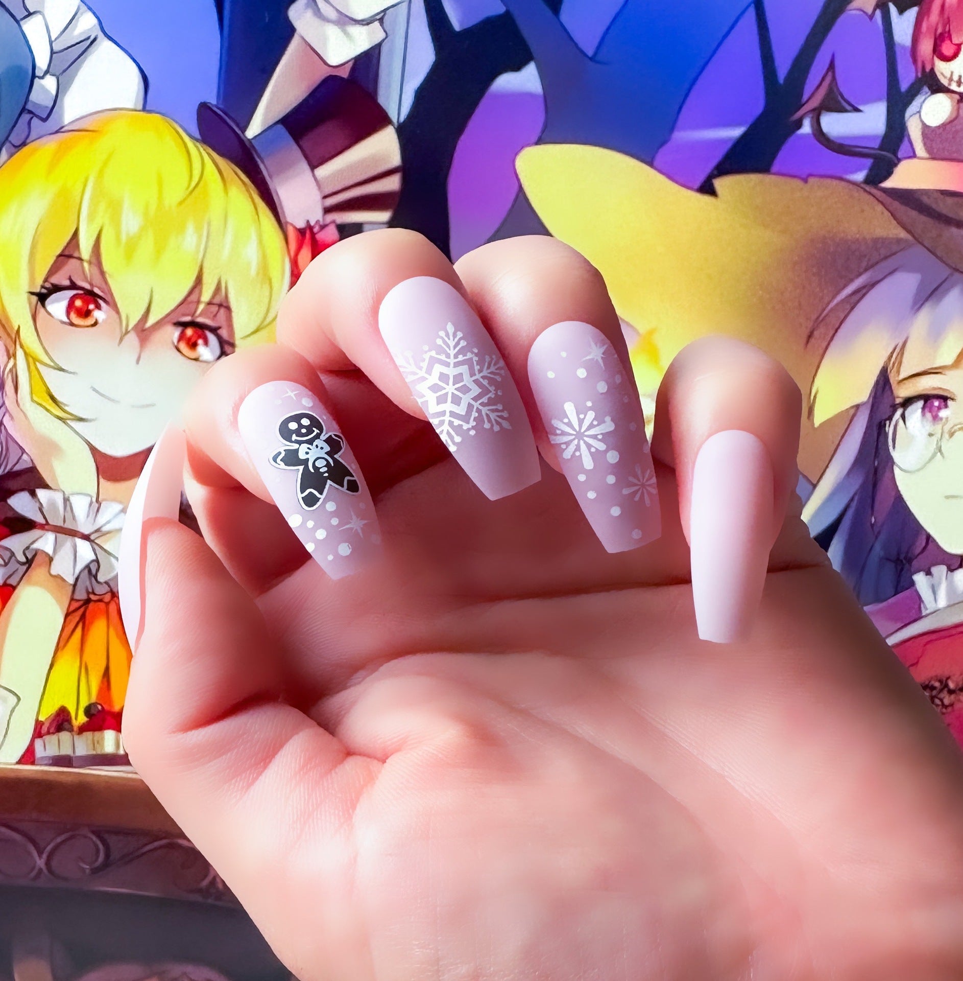 Winter Wonderland Medium Coffin Pale Pink Press On Nail Set with Snowflake Charm Accents