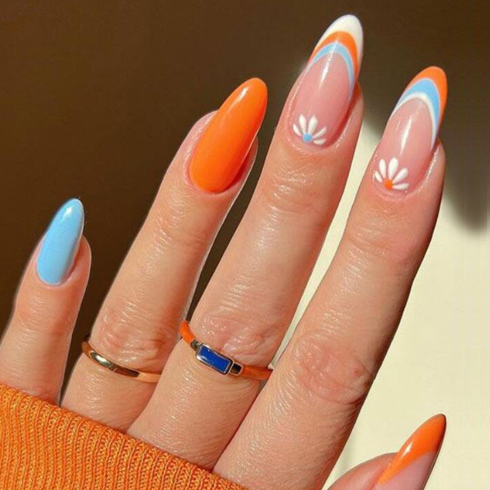 You And Me Summer Medium Oval Orange Cute Press On Nails